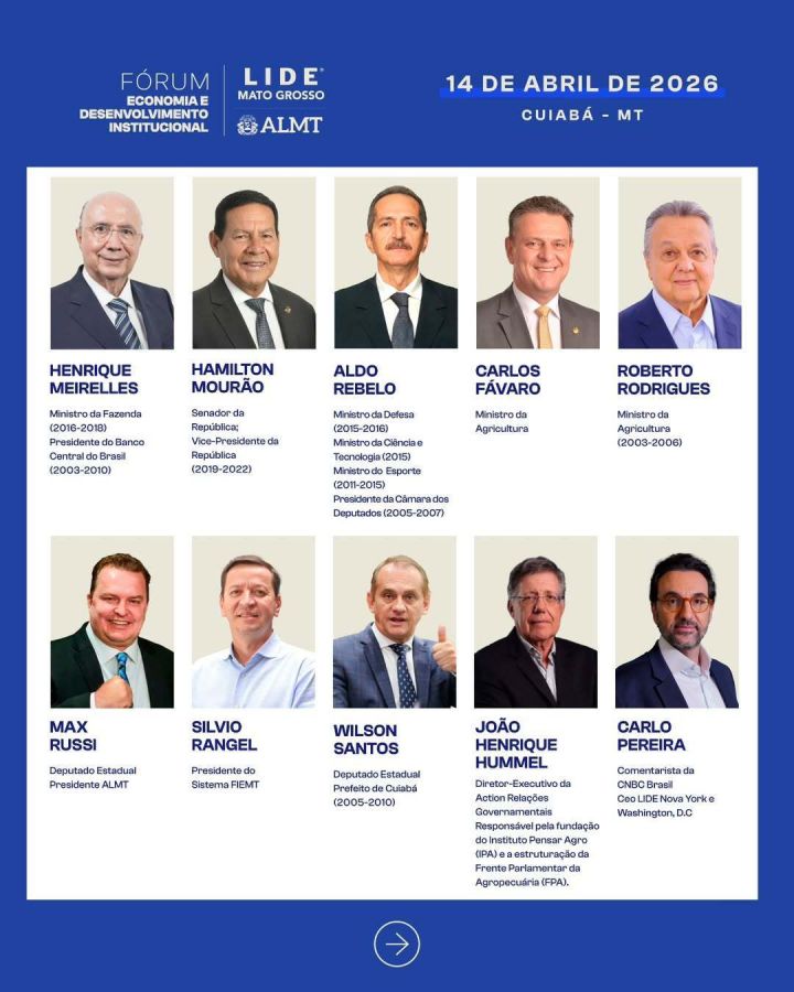 Com apoio da Fiemt, LIDE MT promove fórum sobre economia e desenvolvimento no dia 14